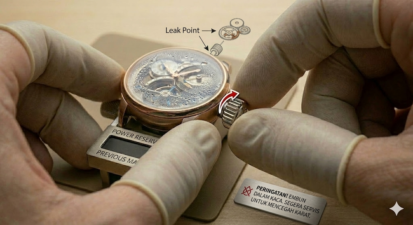If fog appears inside the crystal, it indicates a leak. Over time, the moisture can cause internal components to rust. So, it’s important to take your watch to service as soon as possible. The longer you wait, the greater the risk.